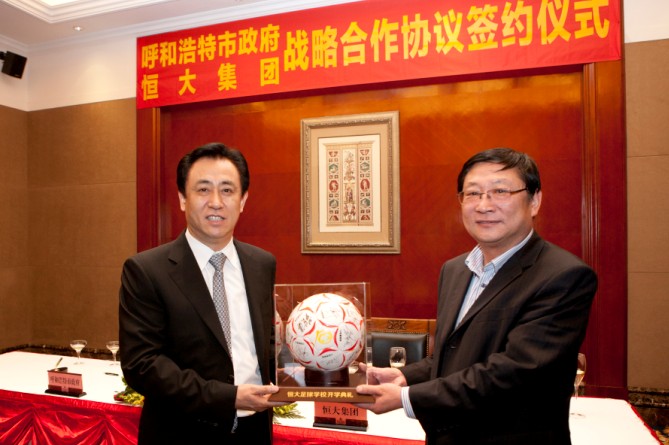 恒大集团副总裁、呼和浩特公司董事长时守明与呼和浩特副市长孙建华签订战略合作协议