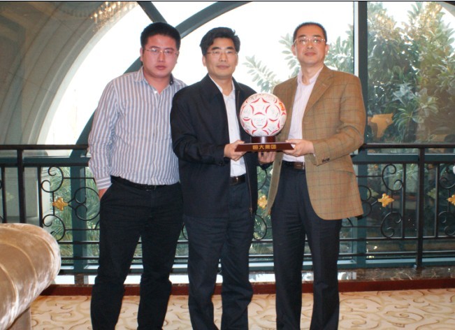 夏海钧总裁向王战营市长赠送球星签名足球