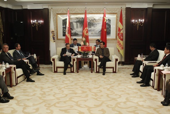 26日晚,弗洛伦蒂诺一行与许主席进行了亲切交谈。这是自2011年8月2日,双方在广州首次会晤后,不到两年时间里,中、西两大足球巨头再次聚首。