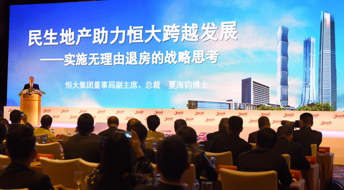 “房地产业发展到今天,住宅已成为商品的一种,理应像其他商品一样获得‘包退’承诺。”夏海钧在会议上指出。他表示,恒大倡议全行业推行无理由退房,进一步保障老百姓的购房权益,促进行业完善售后服务、提升产品品质,助力房地产供给侧改革。