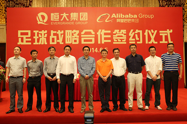 2014年6月5日,恒大集团、阿里巴巴集团足球战略合作签约仪式在广州举行。广州恒大足球俱乐部第一次引入战略投资者,增资扩股,阿里巴巴12亿元入股俱乐部,和恒大分别拥有增资扩股后俱乐部的50%股权。恒大集团董事局主席许家印与阿里巴巴集团董事局主席马云出席了签约仪式,并共同参加了随后举行的媒体交流会。