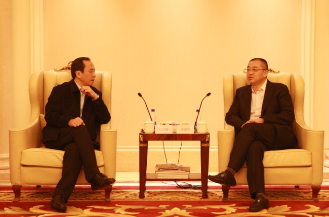 夏海钧总裁与张家界市委副书记、市长许显辉(左)亲切交流