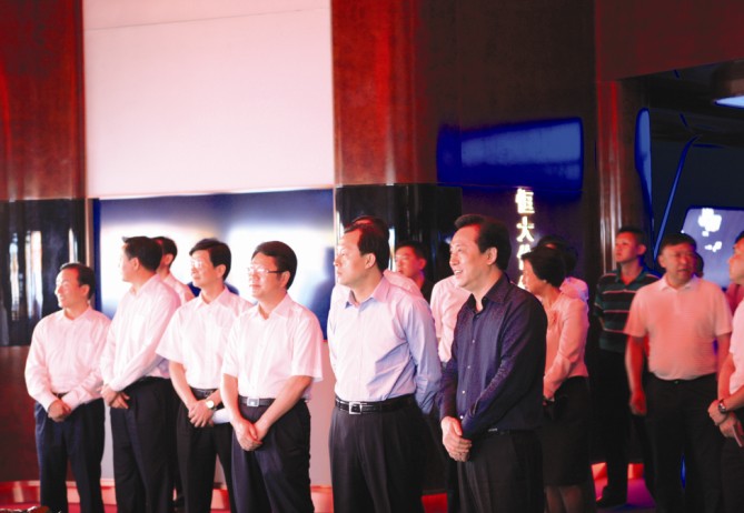 集团董事局主席许家印陪同黑龙江代省长陆昊(前排右二)等省市领导考察集团展厅